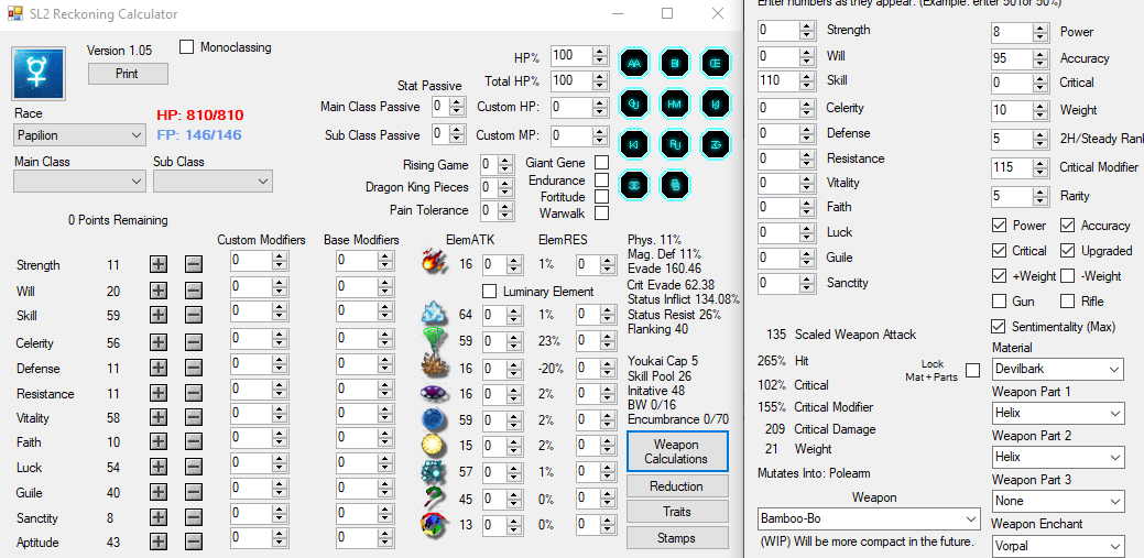 In practice, you'd actually hit 330~% hit, 230+ evasion, 150%+ crit, and between 40 and 60% damage reduction with that just going bog-standard ghost/bk, as well as 1khp+. But you stipulated without hp from classes, and that's a build without classes at more than 800hp on papilion that would work just fine as a standard duelist base.